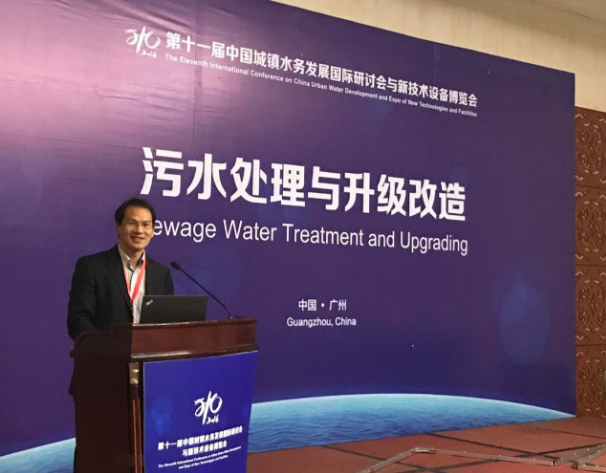 12月8日上午,第十一屆中國城鎮(zhèn)水務(wù)發(fā)展國際研討會與新技術(shù)設(shè)備博覽會在廣州開幕。大會以“貫徹中央城市工作會議精神,探索城市水務(wù)綠色循環(huán)低碳之路”為主題,圍繞提升城市水務(wù)事業(yè)服務(wù)質(zhì)量、推動水務(wù)綠色循環(huán)低碳發(fā)展等問題進行深入交流和探討。國禎環(huán)保受邀參加本次大會,公司總工程師侯紅勛博士作為代表參加本次研討會并作了主旨演講。