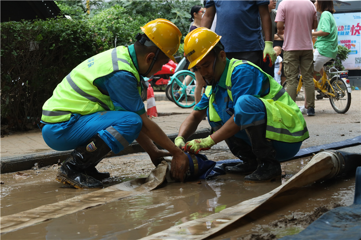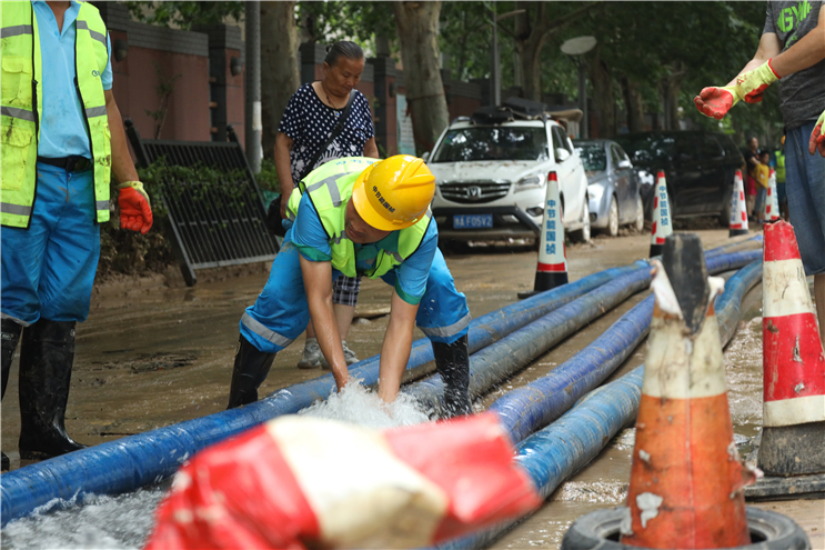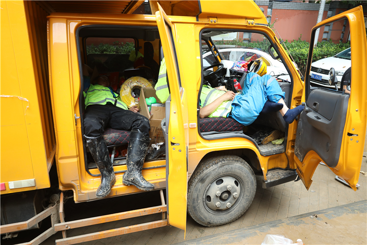 7月23日6點(diǎn),中節(jié)能國禎抽調(diào)6名專業(yè)工程人員組成第二突擊隊(duì),攜帶3輛皮卡巡查車、4臺(tái)搶險(xiǎn)泵奔赴河南。11時(shí)與第一突擊隊(duì)匯合,共同參與鄭州隆福國際小區(qū)地下車庫排澇作業(yè)。