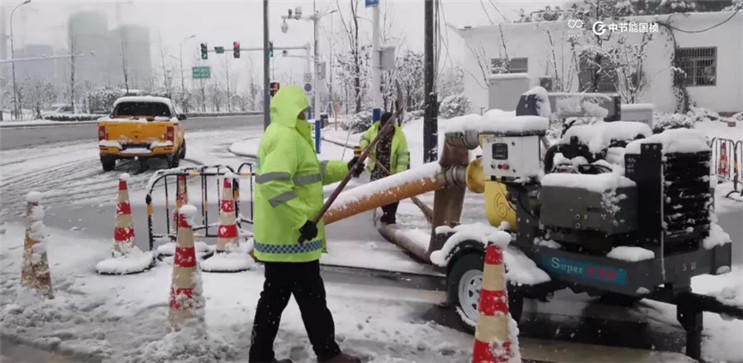 管網(wǎng)事業(yè)部肥西經(jīng)開項目部出動綜合鏟雪車清除路面積雪并疏通重點區(qū)域管道