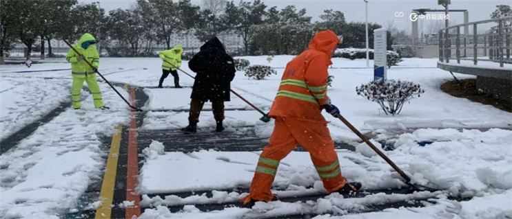 合肥區(qū)域胡大郢污水處理廠清掃地上公園積雪