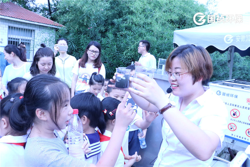 國禎環(huán)保陳晶晶給小朋友介紹介紹污水處理流程
